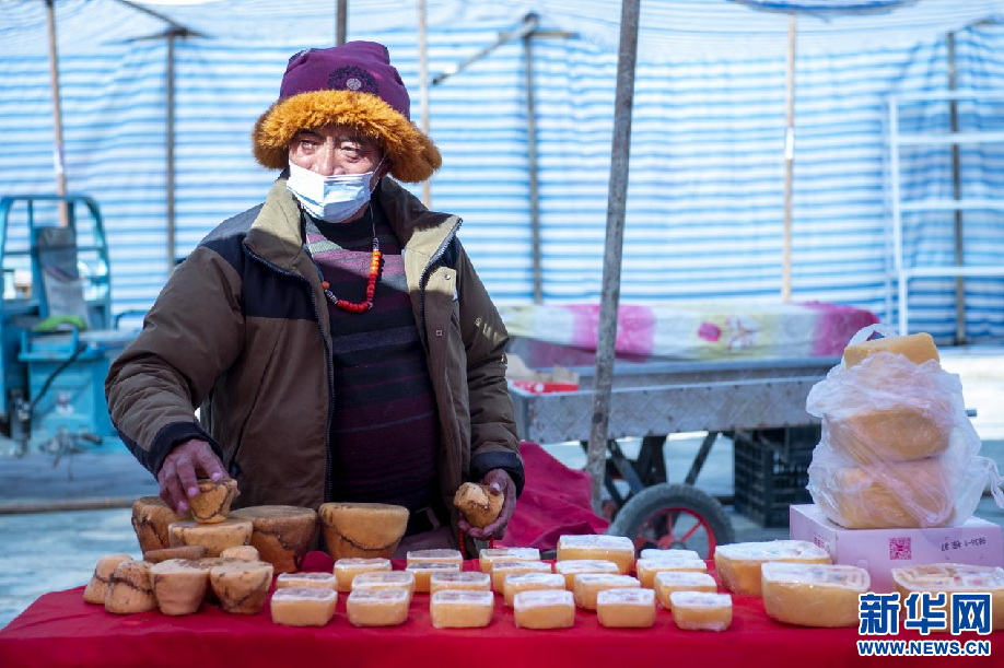 這是來自西藏當(dāng)雄的商戶在介紹商品(1月20日攝)。 新華網(wǎng) 旦增努布 攝