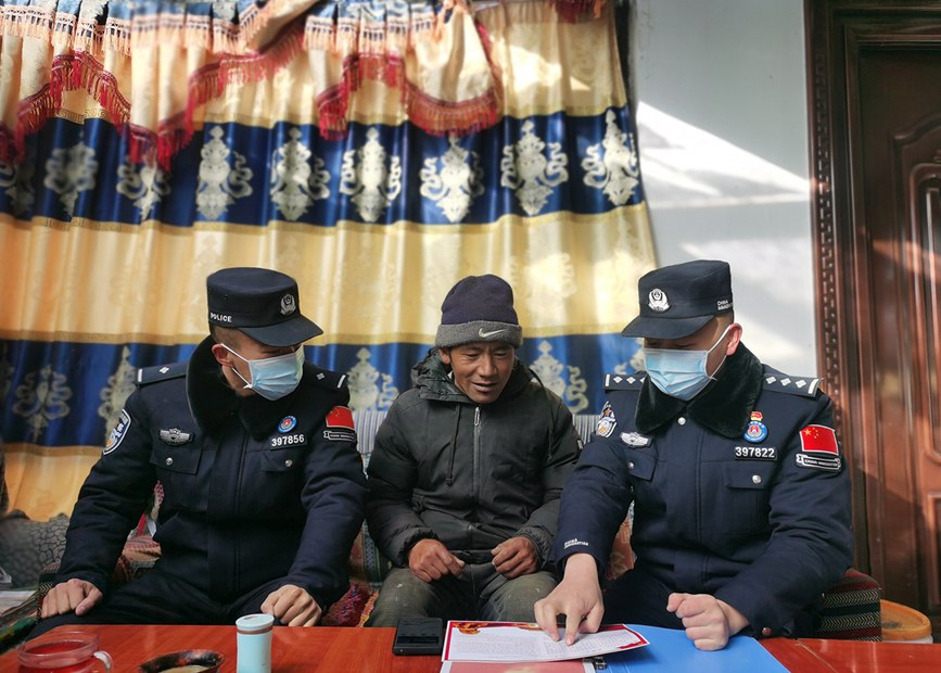 圖為普瑪江塘邊境派出所民警開(kāi)展群眾走訪工作。洛桑曲扎攝