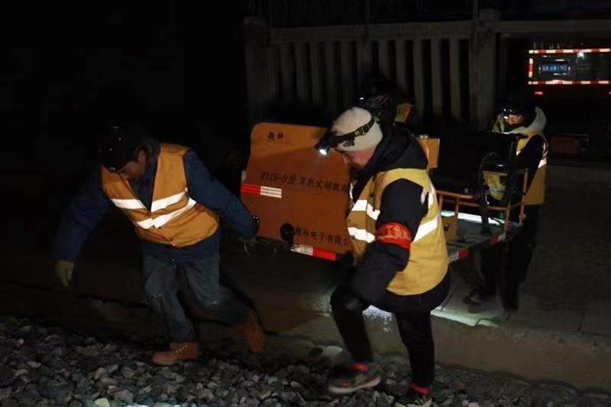 “大家?guī)Ш霉ぞ卟牧?,?zhǔn)備出發(fā)?!?2時(shí)整,隨著作業(yè)負(fù)責(zé)人探傷工區(qū)工長羅布一聲令下,呼嘯的寒風(fēng)中,黃色的“迷你敞篷車”緩緩啟動,載著4名職工,開始了當(dāng)晚對拉林鐵路20多公里線路的探傷檢查任務(wù)。