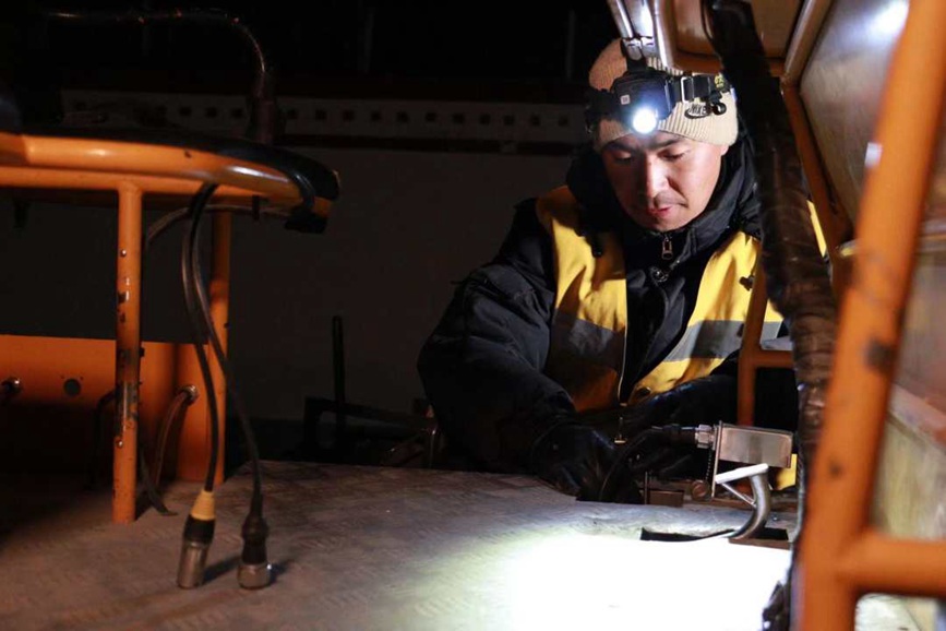 經(jīng)過3個小時(shí)的連續(xù)檢查,零時(shí)50分,20公里的探傷作業(yè)全部完成。職工們準(zhǔn)時(shí)到達(dá)下道地點(diǎn),開始進(jìn)行探傷數(shù)據(jù)的下載、上傳,緊接著,他們又各司其職,開始對探傷儀進(jìn)行拆解,幾分鐘前還在線路上“嗡嗡嗡”不停探傷檢查的“迷你敞篷車”,很快成為一堆形態(tài)各異的零部件,職工格桑群培開始仔細(xì)清點(diǎn)拆卸下來的部件和工具材料,確認(rèn)無遺留后,他鎖上通道門,大家準(zhǔn)備乘車返回工區(qū)。