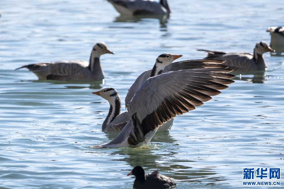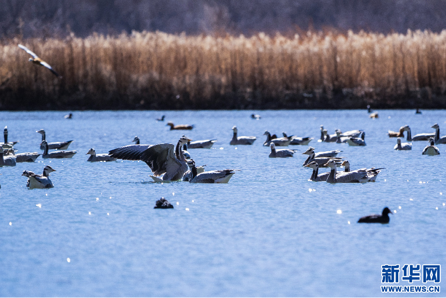 2月2日,在拉魯濕地拍攝的斑頭雁。新華網(wǎng) 旦增努布 攝