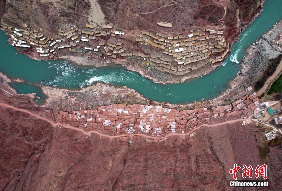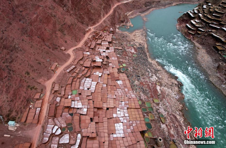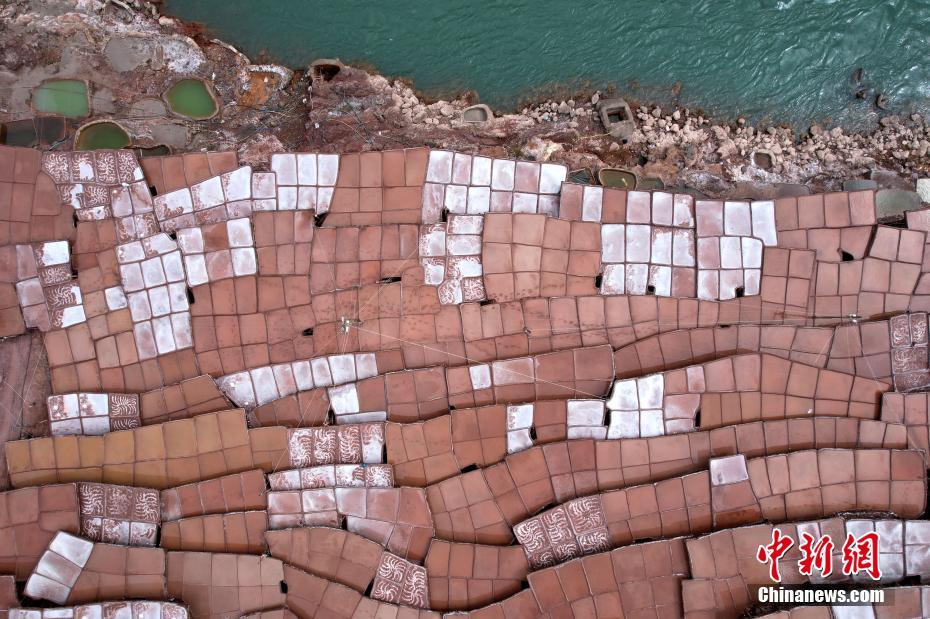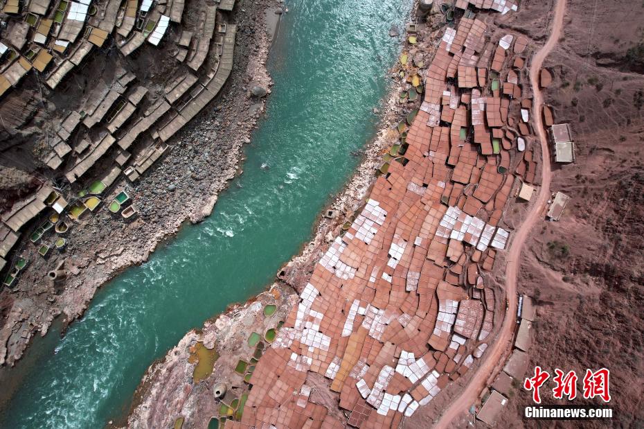 在西藏昌都芒康縣納西民族鄉(xiāng)瀾滄江兩側(cè),有一處古老的、大大小小數(shù)千塊鹽田。史料記載,當(dāng)?shù)貢覃}歷史距今已有1000多年。木柱搭建的鹽田,高低錯落,依河谷山勢,在臨江兩岸蔓延。當(dāng)?shù)孛癖姀慕系柠}井、鹽池中抽出鹵水,引入鹽田,經(jīng)過陽光與風(fēng)的杰作,結(jié)晶成鹽。進(jìn)入鹽田,房內(nèi)頂部到處懸掛鐘乳狀晶鹽,仿若“水晶宮”的世界。圖為2月13日,西藏昌都芒康千年古鹽田。(無人機照片)