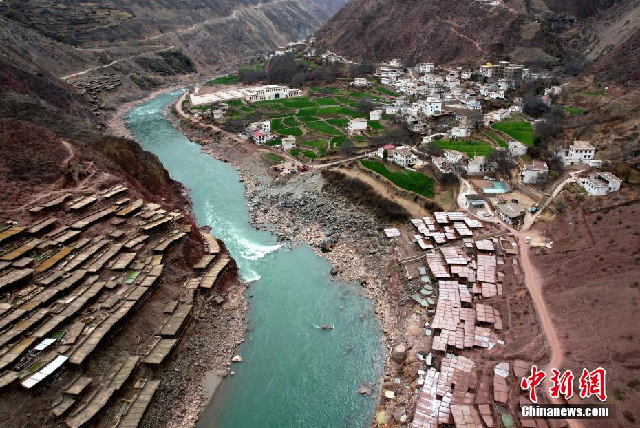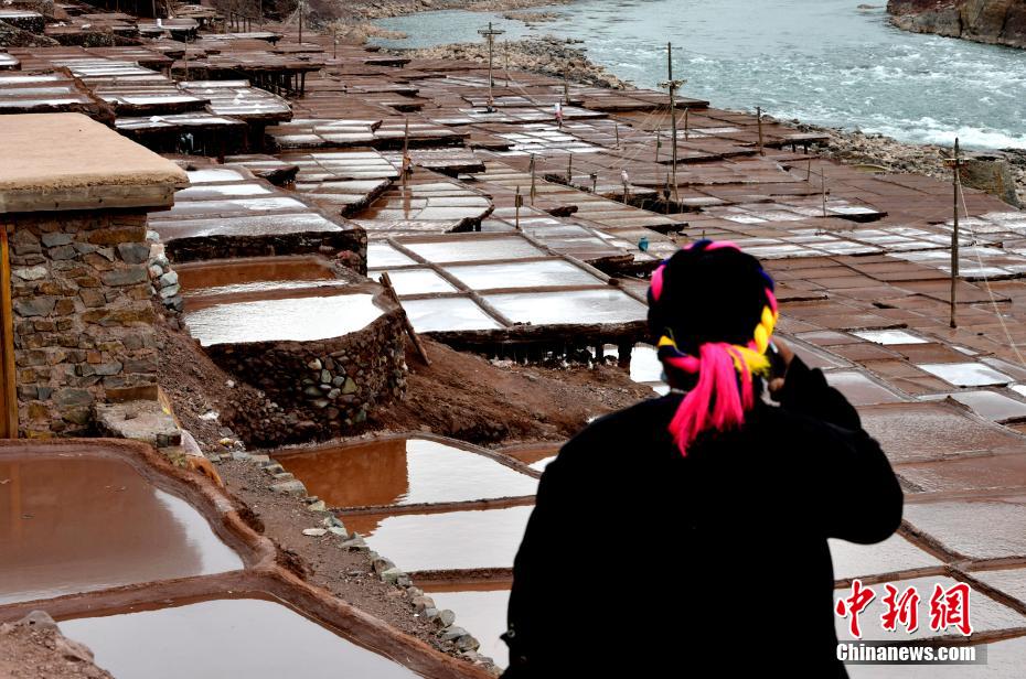 2月13日,西藏昌都芒康縣納西民族鄉(xiāng)加達(dá)村村民俯瞰古鹽田。