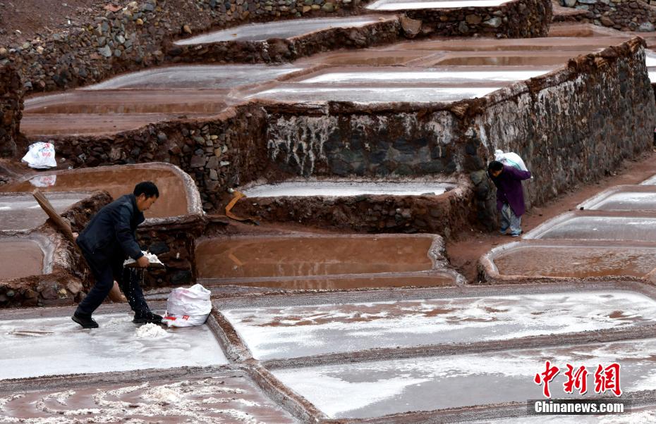 2月13日,西藏昌都芒康縣納西民族鄉(xiāng)加達(dá)村村民正在鹽田勞作。