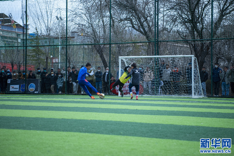 2月14日,巔炯邁瓦隊(duì)球員在點(diǎn)球大戰(zhàn)中射門。新華網(wǎng) 旦增努布 攝