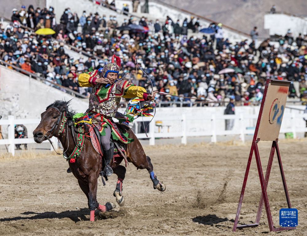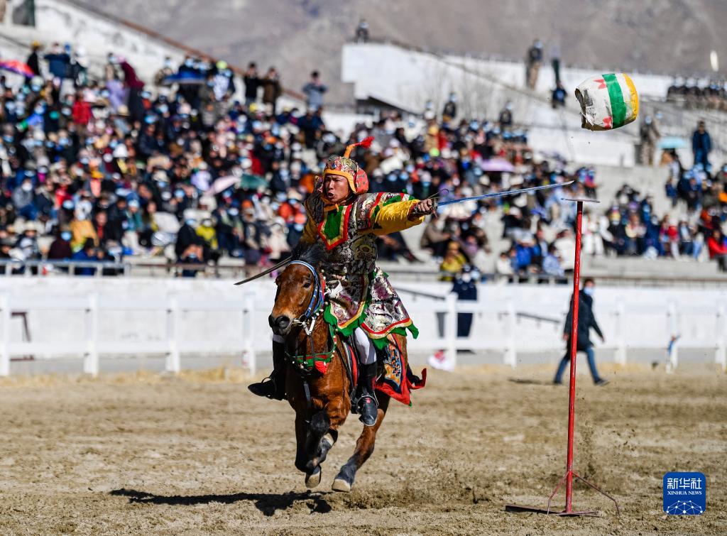 2月23日,在拉薩賽馬場舉辦馬術(shù)表演已成為當?shù)貞c祝新年的傳統(tǒng),深受廣大群眾喜愛。騎手們英姿颯爽,為觀眾們帶來騎馬拾哈達、騎馬射箭等精彩表演。