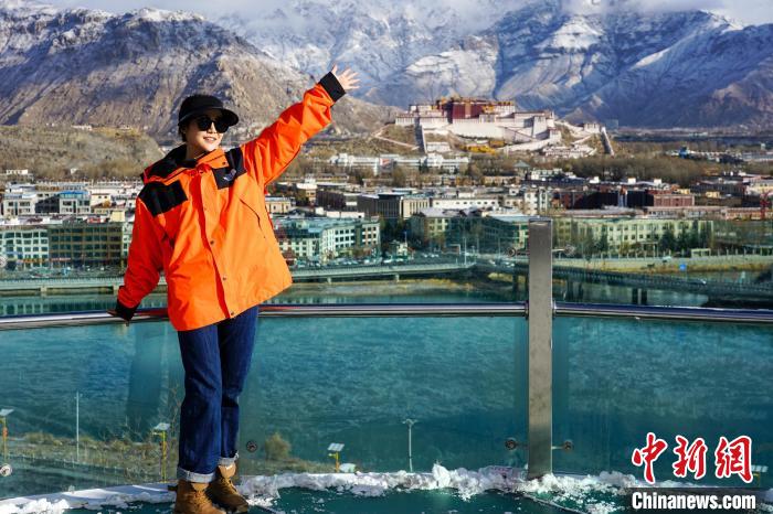 圖為游客在拉薩南山公園與布達(dá)拉宮雪景合影。江飛波 攝