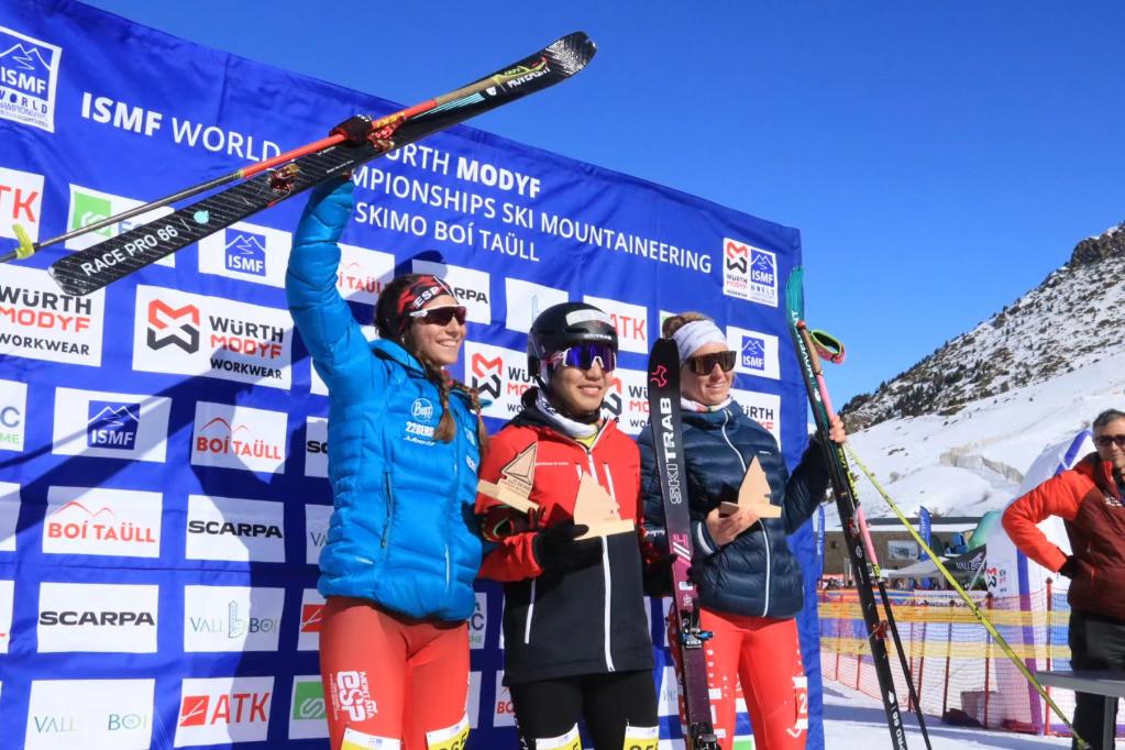 玉珍拉姆(中)在領(lǐng)獎(jiǎng)臺(tái)上