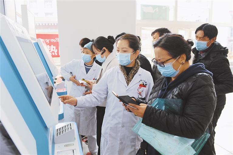 拉薩市人民醫(yī)院女醫(yī)務人員幫助患者家屬辦理業(yè)務。丹增群培 攝