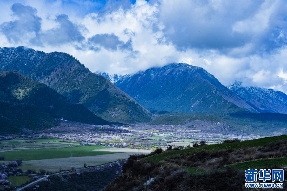 3月25日,在林芝市波密縣傾多鎮(zhèn)桃花簇擁下的小村落。新華網(wǎng) 達次攝