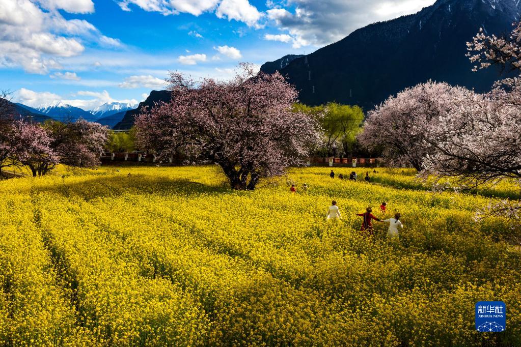 目前,西藏林芝市嘎拉村漫山遍野的桃花綻放,美麗春景引人入勝。