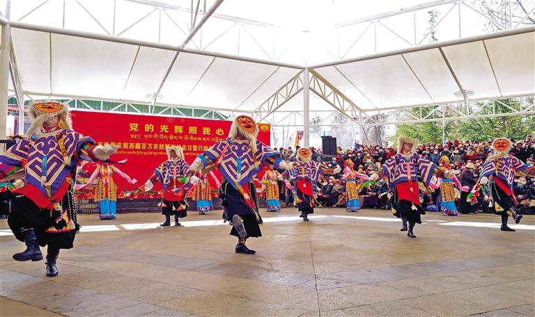 連日來(lái),拉薩市城關(guān)區(qū)、堆龍德慶區(qū),山南市瓊結(jié)縣、那曲市班戈縣分別舉行紀(jì)念西藏百萬(wàn)農(nóng)奴解放64周年文藝表演。優(yōu)美的歌聲、熱情的舞步,不時(shí)贏得在場(chǎng)觀眾的陣陣喝彩??赐暄莩?,群眾益西旦增激動(dòng)地說(shuō):“64年來(lái),西藏發(fā)生了翻天覆地的變化,我們的生活越來(lái)越好,大家從內(nèi)心深處感謝黨和國(guó)家?!?/p>