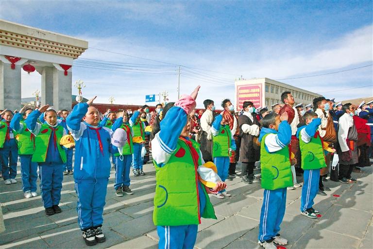28日,西藏大學(xué)、拉薩市教育局組織學(xué)生開(kāi)展“升國(guó)旗、唱國(guó)歌”活動(dòng),并觀看《復(fù)興之路》和《人格的力量——中國(guó)共產(chǎn)黨人的家國(guó)情懷》兩個(gè)直播課堂,革命先烈為實(shí)現(xiàn)國(guó)家解放和民族復(fù)興前仆后繼、視死如歸的英雄事跡深深打動(dòng)了每一名學(xué)生。西藏大學(xué)學(xué)生向秋雨說(shuō):“我們要以史為鑒,開(kāi)創(chuàng)未來(lái),扎實(shí)學(xué)好專(zhuān)業(yè)知識(shí),維護(hù)祖國(guó)統(tǒng)一,鑄牢中華民族共同體意識(shí),讓青春之花在祖國(guó)最需要的地方絢麗綻放?!?/p>