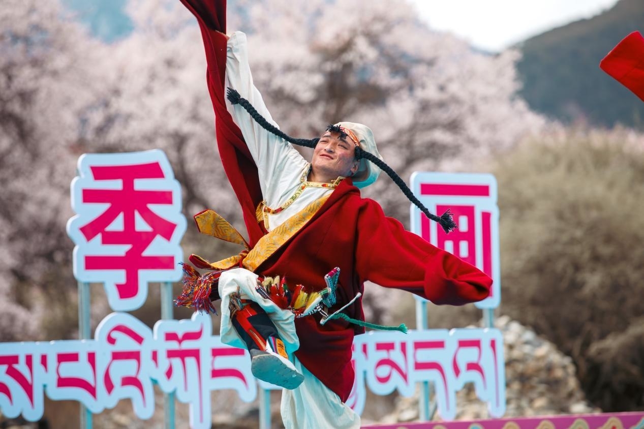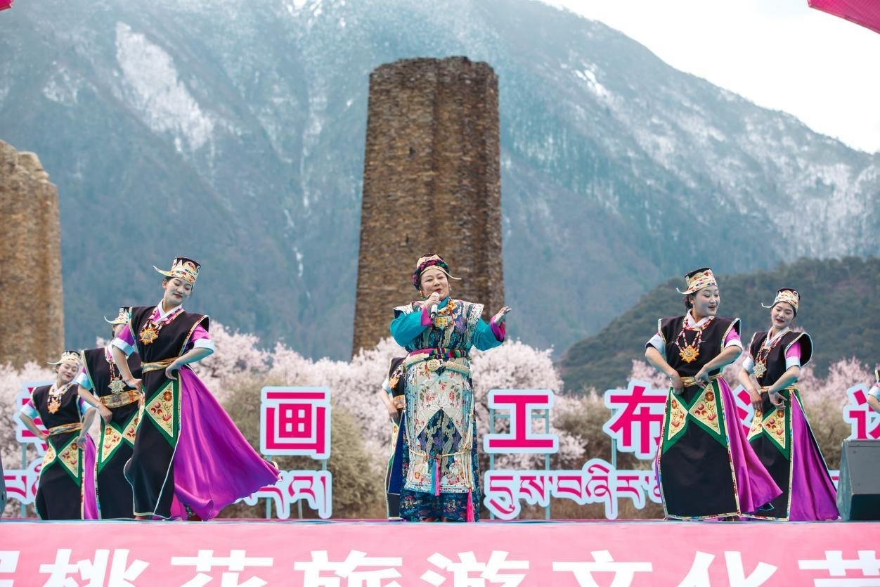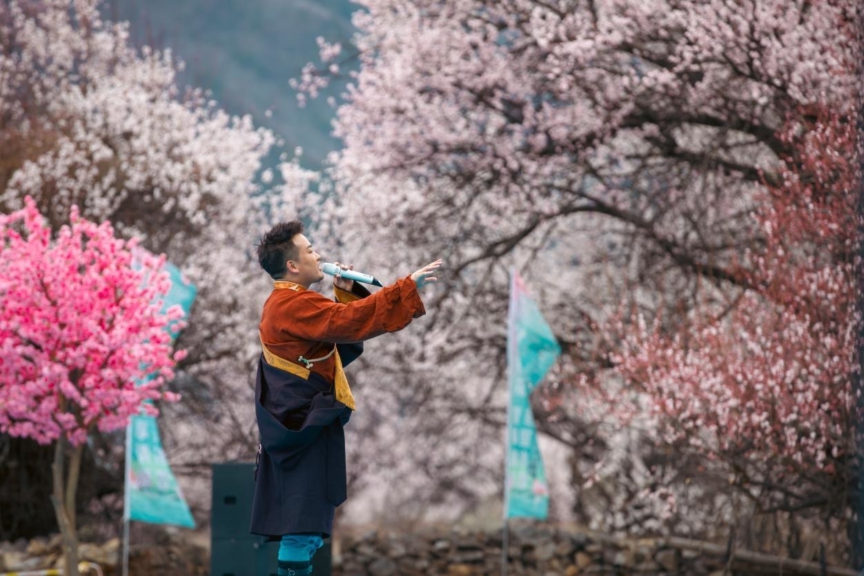 皚皚雪山下,千年古堡旁,灼灼桃花,花開正艷。羅布桑珠、巴金旺甲、齊旦布、桑杰才讓等藏族知名歌手、工布江達本地歌手、當(dāng)?shù)厝罕婟R聚,流行歌曲與工布民歌等當(dāng)?shù)靥厣硌萁Y(jié)合,為網(wǎng)友們獻上了一場桃花樹下的歌舞盛宴。