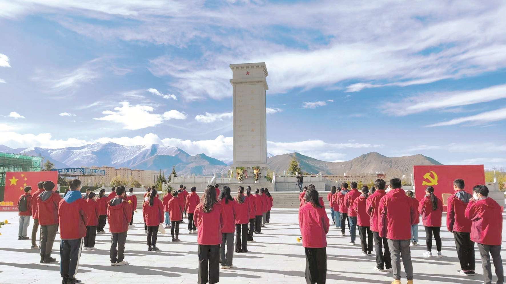 鮮花寄哀思,傳承慰英魂?;顒?dòng)現(xiàn)場,90余名“西部計(jì)劃”西藏專項(xiàng)志愿者身著紅色志愿服,手持黃色菊花,向革命先烈集體默哀,并瞻仰革命烈士紀(jì)念碑向革命先烈敬獻(xiàn)花籃,表達(dá)對革命先烈的無限崇敬之情和深情哀思。