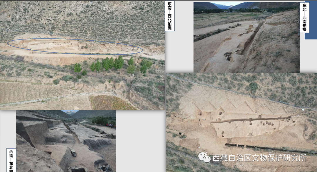 結(jié)桑墓地位于西藏自治區(qū)山南市乃東區(qū)結(jié)巴鄉(xiāng)格桑村一組西北方的象山東麓山腳處。該墓地由西藏自治區(qū)文物普查隊(duì)于1984年發(fā)現(xiàn),當(dāng)時(shí)清理了3座墓葬。經(jīng)國(guó)家文物局批準(zhǔn),2022年7月至8月,西藏自治區(qū)文物保護(hù)研究所與四川大學(xué)考古文博學(xué)院等單位組成聯(lián)合考古隊(duì)對(duì)該墓地進(jìn)行了考古發(fā)掘,發(fā)掘面積300平方米,清理墓葬40座。這批墓葬類型多樣,以土坑石室墓為主,另有洞室墓、石板墓和土坑墓。墓地內(nèi)的墓葬方向基本一致,存在小聚集的特征,表明該墓地應(yīng)有一定規(guī)劃,并且已經(jīng)形成了相應(yīng)的喪葬傳統(tǒng)。隨葬品較少,主要出土于洞室墓,包括陶器、石器、鐵器、銅器和料珠等;其中陶器最多,形制特別,具有鮮明的區(qū)域特色。這批墓葬的葬式亦比較一致,主要為屈肢葬。根據(jù)測(cè)年數(shù)據(jù),結(jié)合地層關(guān)系、墓葬形制和隨葬品等信息,可初步將墓地年代分為三期:第一期為公元前13世紀(jì)末—公元前10世紀(jì)后期;第二期為公元前4世紀(jì)—公元前1世紀(jì);第三期為吐蕃時(shí)期(公元7世紀(jì)左右)。結(jié)桑墓地是西藏腹心地區(qū)近年來經(jīng)科學(xué)系統(tǒng)發(fā)掘的一處重要的史前墓地,其發(fā)現(xiàn)表明早在商周時(shí)期西藏中部地區(qū)應(yīng)該已經(jīng)形成一個(gè)相對(duì)穩(wěn)定的文化區(qū),這對(duì)構(gòu)建西藏中部的考古學(xué)年代框架和文化序列,探索吐蕃文明起源等歷史問題具有重要的價(jià)值。