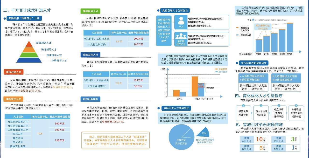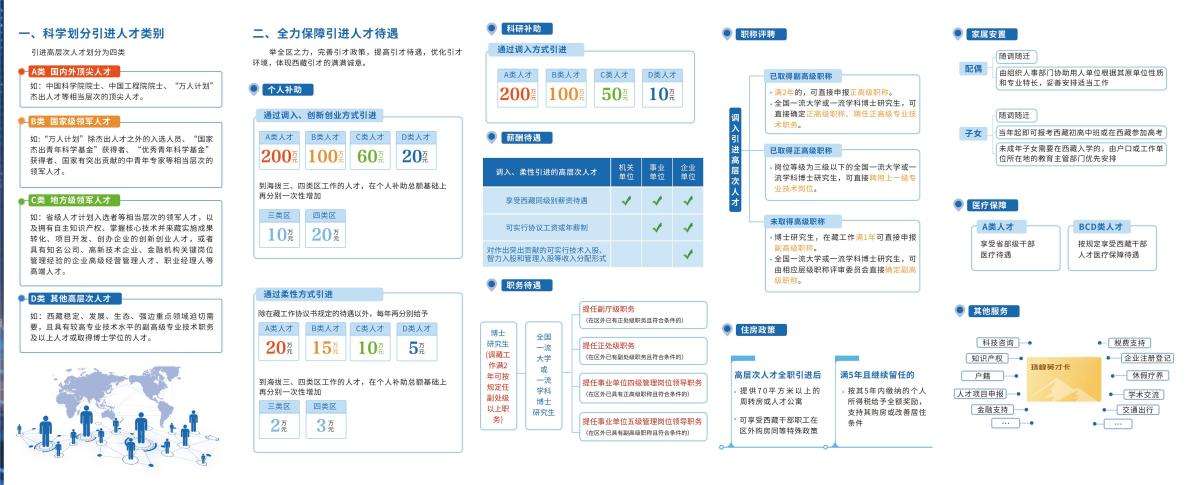 據(jù)悉,近年來,西藏自治區(qū)深入實施人才“育、引、用、留”四大工程,制定出臺了《關(guān)于加強和改進新時代西藏人才工作的若干措施(試行)》,科學(xué)劃分引進人才類別,將引進高層次人才劃分為A、B、C、D四類。在個人補助、科研補助、薪酬待遇、職務(wù)待遇、職稱評聘、住房政策、家屬安置、醫(yī)療保障等方面全力保障引進人才待遇。同時,千方百計成就引進人才,支持引進人才創(chuàng)新創(chuàng)業(yè),激勵引進人才成果轉(zhuǎn)化,實行配套表彰獎勵政策。此外,在簡化優(yōu)化人才引進程序、實施引才伯樂激勵措施方面均有明確政策。