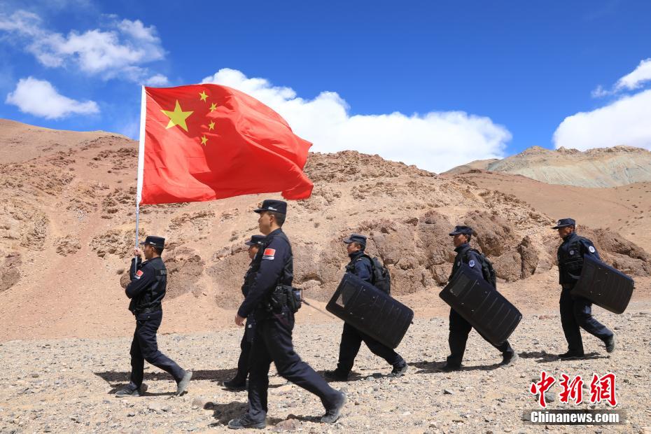 近日,西藏阿里邊境管理支隊(duì)扎西崗邊境派出所組織民警和護(hù)邊員通過乘車巡邏和徒步巡邏相結(jié)合的方式,前往海拔4800米的“守邊固邊第一村”——典角村古格川執(zhí)勤點(diǎn)巡邏,經(jīng)過一個(gè)小時(shí)的車巡和一個(gè)小時(shí)的徒步巡邏,民警到達(dá)了古格川執(zhí)勤點(diǎn)。通過巡邏,及時(shí)掌握了邊境一線情況,確保了邊境轄區(qū)安全穩(wěn)定。圖為民警與國(guó)旗合影。郭遠(yuǎn)敬 攝
