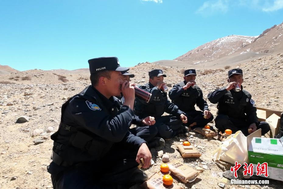 近日,西藏阿里邊境管理支隊(duì)扎西崗邊境派出所組織民警和護(hù)邊員通過乘車巡邏和徒步巡邏相結(jié)合的方式,前往海拔4800米的“守邊固邊第一村”——典角村古格川執(zhí)勤點(diǎn)巡邏,經(jīng)過一個(gè)小時(shí)的車巡和一個(gè)小時(shí)的徒步巡邏,民警到達(dá)了古格川執(zhí)勤點(diǎn)。通過巡邏,及時(shí)掌握了邊境一線情況,確保了邊境轄區(qū)安全穩(wěn)定。圖為移民管理警察巡邏途中休息。郭遠(yuǎn)敬 攝