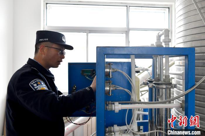民警李加潘正在檢修保養(yǎng)自來(lái)水凈化設(shè)備?!±盍?攝