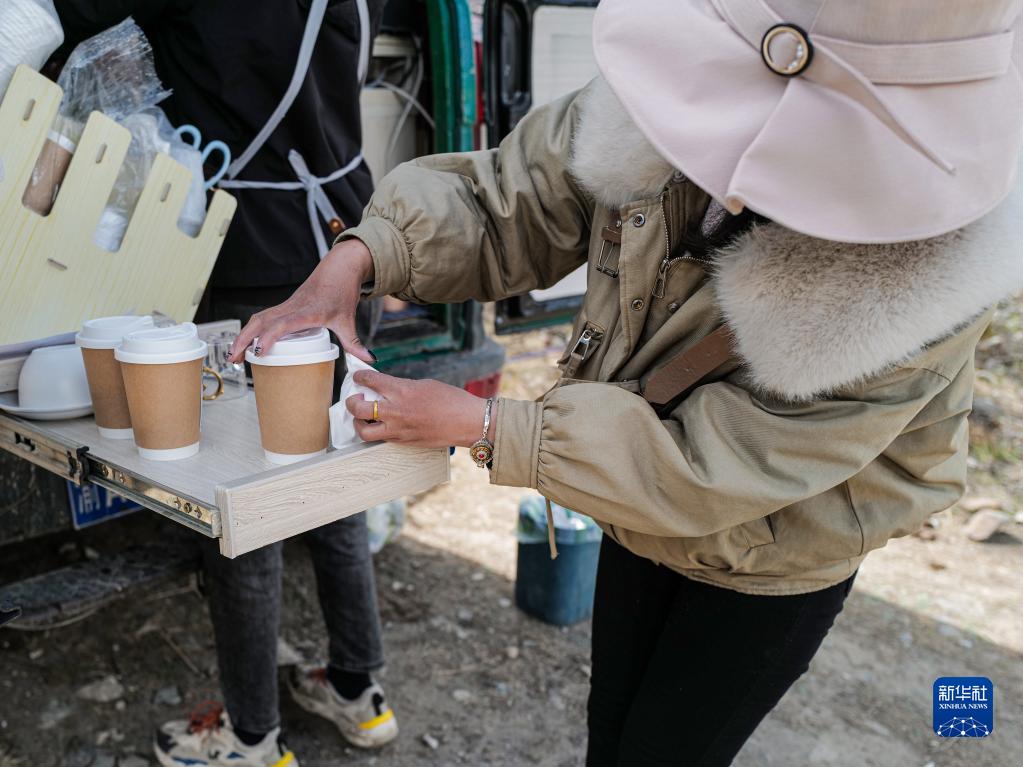 譚艷正在準(zhǔn)備咖啡(2023年3月24日攝)。新華社記者 格桑朗杰 攝