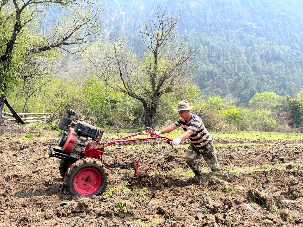 44歲的村民夏多這幾天一刻不得閑,每天一大早,便戴好草帽,穿上膠鞋直奔地里。前些日子剛把水稻田松土澆水完后,緊接著他又一頭扎進(jìn)玉米地,推著犁地機(jī)將田地犁出一道道深深的壟溝?!敖衲晡疫€要幫其他人耕地,13畝多的地得抓緊收拾好,過幾天就要種玉米了?!?/p>