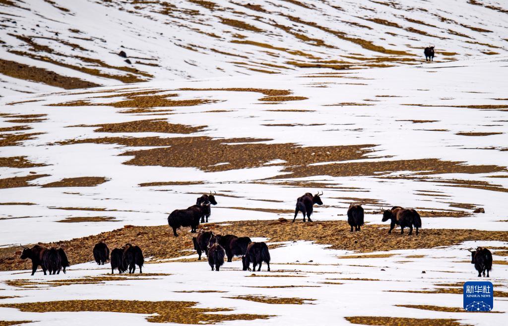 這是在羌塘國(guó)家級(jí)自然保護(hù)區(qū)那曲市雙湖縣區(qū)域內(nèi)拍攝到的成群的野牦牛(4月17日攝) 。新華社記者 姜帆 攝