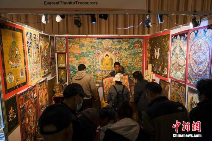 5月4日,西藏(拉薩)中外商品展銷會現(xiàn)場的唐卡展銷位。據(jù)西藏自治區(qū)外經(jīng)貿(mào)協(xié)會工作人員介紹,展銷會從4月29日至5月4日舉行,共有印度、尼泊爾、巴基斯坦、伊朗、塔吉克斯坦、不丹及阿富汗7個國家的84名外籍人員攜本國特色產(chǎn)品參展。中新社記者 江飛波 攝