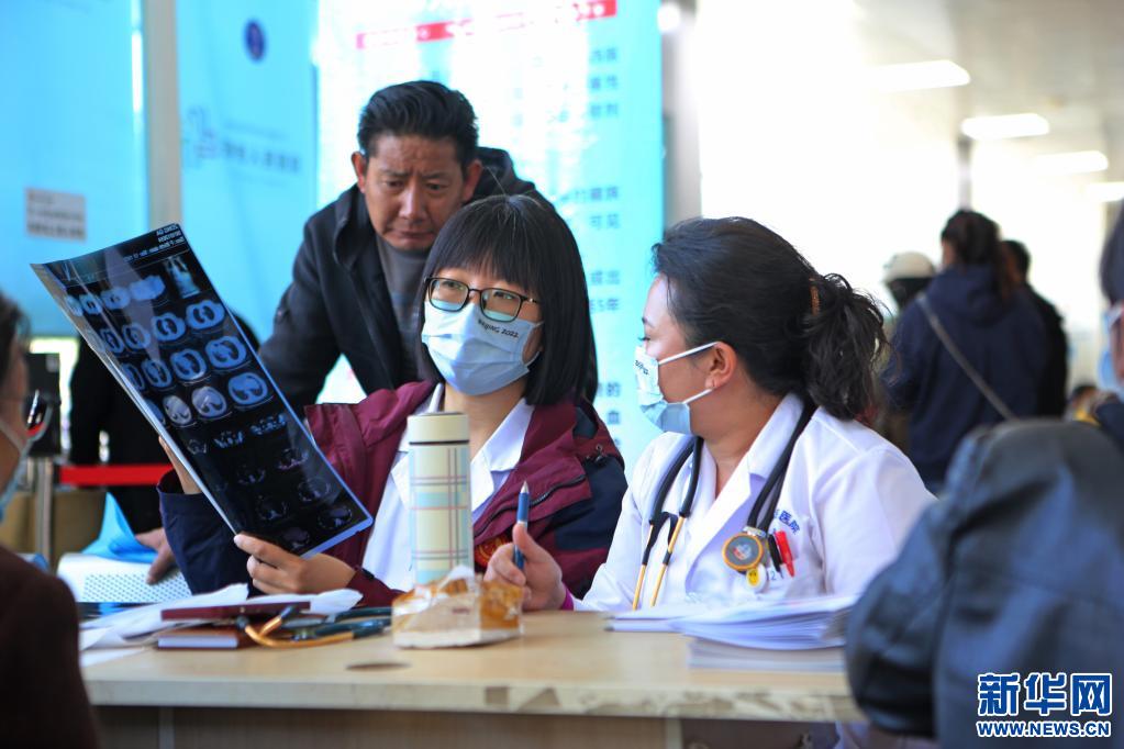 圖為“京藏攜手,護佑藍唇”義診活動現(xiàn)場,楊蘇喬醫(yī)生(左一)在為患者診治疾病。(5月5日攝)