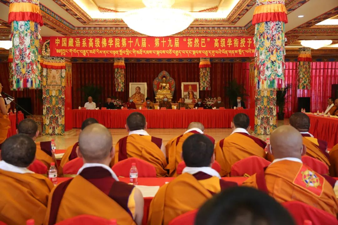 5月23日,藏傳佛教第十八屆、十九屆“拓然巴”高級學銜授予儀式在北京中國藏語系高級佛學院舉行。來自藏傳佛教格魯派、寧瑪派、薩迦派、噶舉派、苯波派的62名學員,經過3年刻苦學習,圓滿完成學業(yè),取得中國藏語系高級佛學院高級學銜班畢業(yè)證書。經過嚴格的資格審查、辯經考試、論文答辯,62名學員全部獲得藏傳佛教“拓然巴”高級學銜。