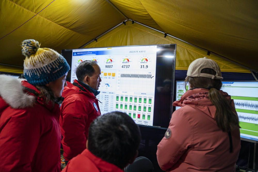 在海拔5200米的珠峰大本營(yíng)科考指揮帳里,科考登頂隊(duì)員每完成一項(xiàng)任務(wù),科學(xué)家和工作人員都報(bào)以熱烈的掌聲、喝彩聲。