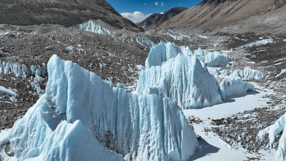 這是珠峰中絨布冰川(5月15日攝,無(wú)人機(jī)照片)。新華社記者 晉美多吉 攝