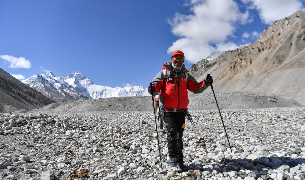 這是珠峰科考登頂隊(duì)隊(duì)長(zhǎng)扎西平措(5月18日攝)。新華社記者 晉美多吉 攝