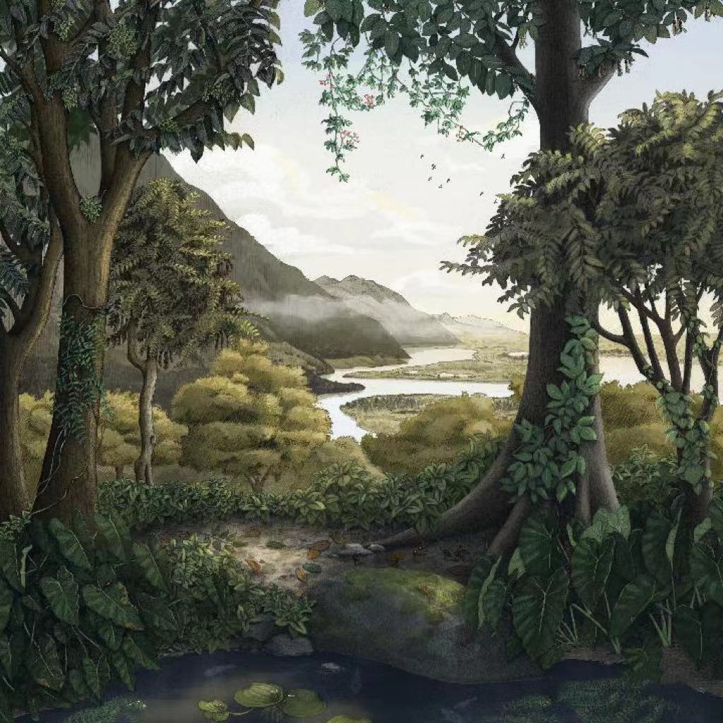 青藏高原部分地區(qū)生物群復(fù)原圖。(中國(guó)科學(xué)院西雙版納熱帶植物園供圖)