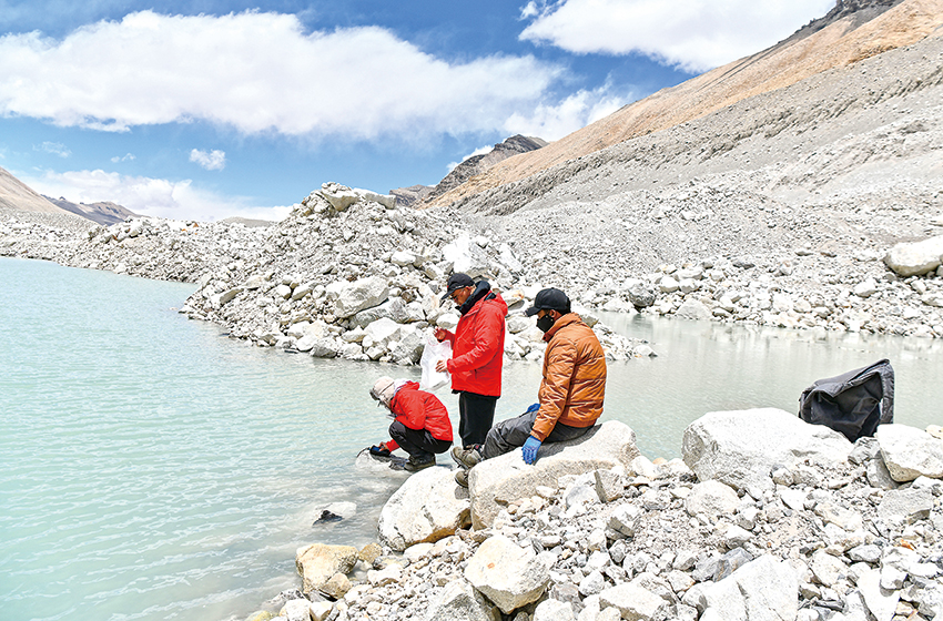 “我們沿著喜馬拉雅山脈做了很多工作,采集了2000多份樣品?!眲⒓褲M懷憧憬地說,“我們會從大本營出發(fā)努力接近海拔7000米區(qū)域,完成15個(gè)雪冰樣品和15個(gè)沙石樣品采集。希望通過一塊塊拼圖,努力還原青藏高原形成演化的‘大圖紙’。”