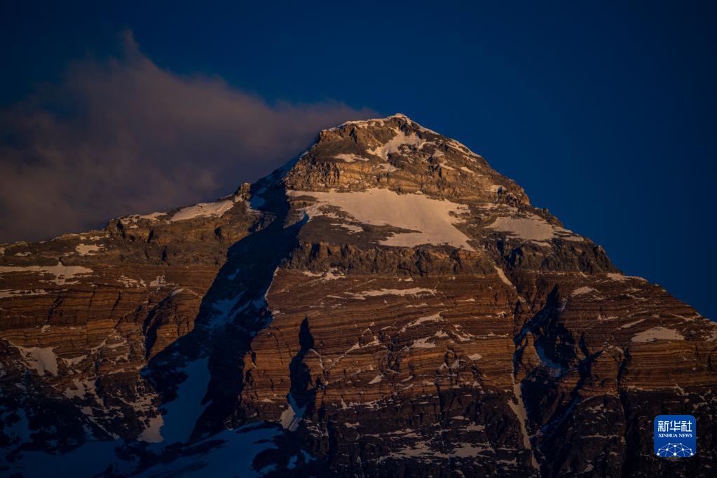 這是5月9日日落時(shí)分拍攝的珠穆朗瑪峰。新華社記者 孫非 攝