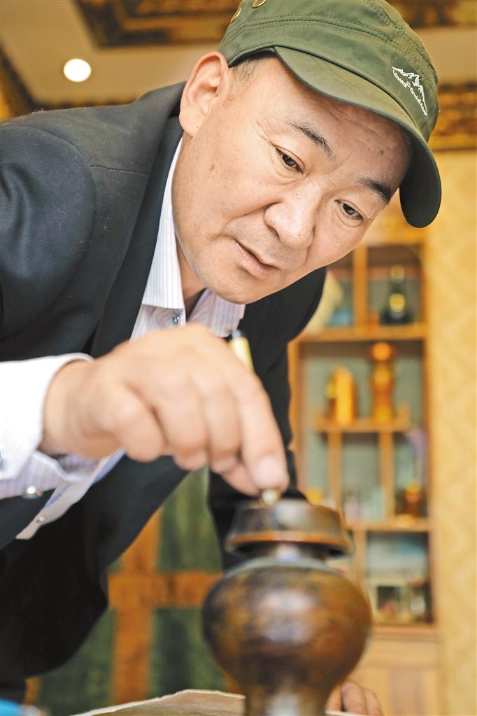 藏文書法作為藏民族獨(dú)有的傳統(tǒng)文化,也是中華民族的文化瑰寶,源遠(yuǎn)流長且極富藝術(shù)魅力?!皬囊粋€普普通通的村民變成國家級非物質(zhì)文化遺產(chǎn)傳承人,我的故事就是黨和國家、自治區(qū)高度保護(hù)和傳承弘揚(yáng)中華文化的一個縮影。國家和西藏投入了巨大的人力、物力和財力,使西藏優(yōu)秀傳統(tǒng)文化在有效的保護(hù)基礎(chǔ)上煥發(fā)出蓬勃的生機(jī)?,F(xiàn)在,我們面臨著新的機(jī)遇和條件,西藏文化也必將為豐富中華文化作出新的更大貢獻(xiàn)?!痹黝D珠心存感激地說。(本版圖片均由記者 格桑倫珠 裴聰 攝)