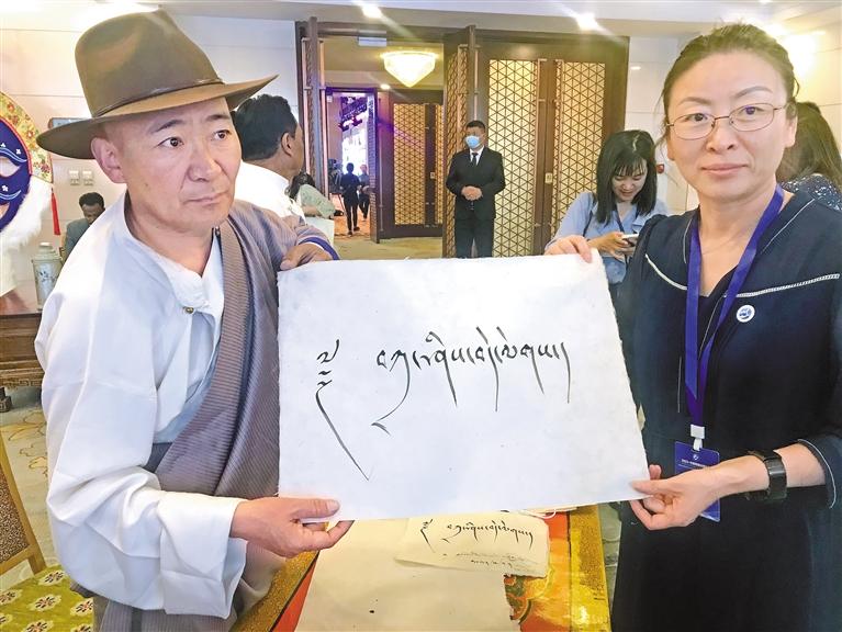 論壇會上,鋪開獨(dú)特的藏紙,手持光潤的竹筆,48歲的藏文書法家扎西頓珠鄭重寫下“扎西德勒”四個字,贈予前來參會的中外嘉賓。作為國家級非物質(zhì)文化遺產(chǎn)代表性項目藏文書法(尼赤)的代表性傳承人,扎西頓珠希望讓更多人感受并了解西藏傳統(tǒng)書法之美?!斑@次論壇期間,我先后向中外嘉賓送上了300多幅書法作品,我們藏族傳統(tǒng)文化能被全世界看見并受到喜愛,推動各民族交往交流交融,感到非常開心和自豪?!眲倧谋本┗貋聿痪?,閑不住的扎西頓珠又在準(zhǔn)備參加藏博會的書法作品,傳播藏文書法文化。