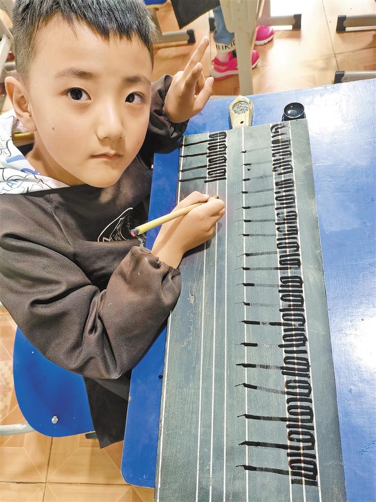 今年10歲的扎西次仁和他的同學(xué)們席地端坐,左手握木制藏文書寫板,右手持竹筆,一起認(rèn)真練習(xí)尼赤派書法。扎西頓珠平時利用閑暇時間在家免費(fèi)教授書法。“孩子能在國家級非遺傳承人門下學(xué)習(xí)藏文書法,機(jī)會難得,我們?nèi)胰朔浅VС郑卜浅s幸。孩子也學(xué)得非常認(rèn)真?!笔忻窭纺弥鴥鹤觿倢懞玫臅ㄗ髌犯锌?。