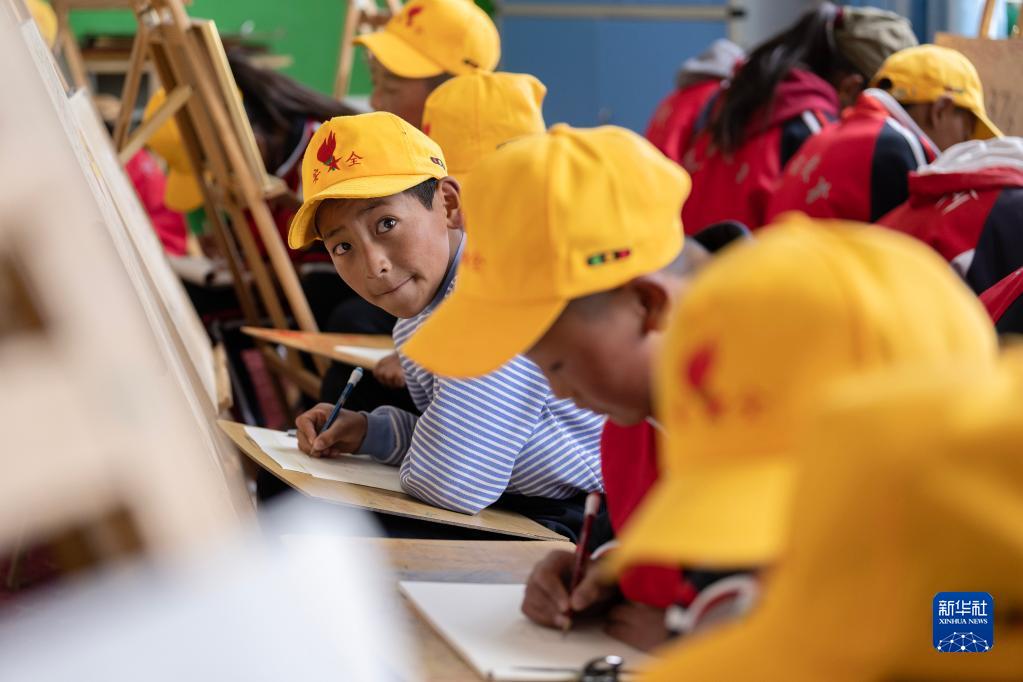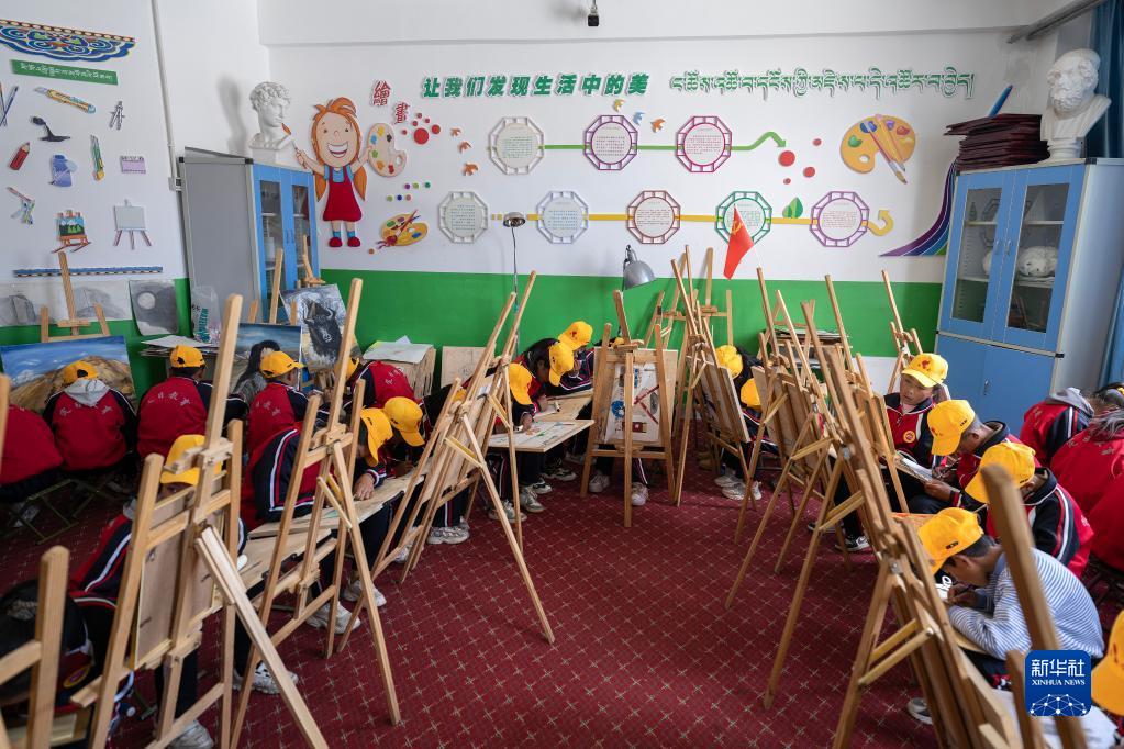 6月5日,扎西宗鄉(xiāng)完全小學的學生在上美術課。新華社記者 費茂華 攝
