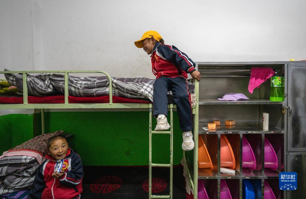 6月5日,扎西宗鄉(xiāng)完全小學的學生在宿舍準備就寢。新華社記者 費茂華 攝