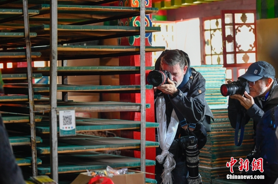 6月15日,西藏拉薩,記者們在尼木縣非遺工坊(藏紙制作廠)采訪拍攝。在第五屆中國西藏旅游文化國際博覽會召開之際,國務院新聞辦組織中外媒體記者赴西藏采訪,路透社、共同社、西班牙埃菲社、意大利安莎社、新加坡《聯(lián)合早報》和中央廣電總臺、中國日報等15家媒體的20名記者參加。6月15日,采訪團一行前往拉薩市尼木縣參訪體驗西藏傳統(tǒng)藏香、藏紙文化。