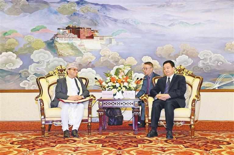 蒂米爾西納表示,很高興來藏參加第五屆藏博會,并對西藏經濟社會發(fā)展取得的成就表示祝賀。他說,尼中友誼源遠流長,兩國是好鄰居、好朋友、好伙伴。尼方高度重視與中國及西藏自治區(qū)的交流合作,西藏經濟社會發(fā)展有很多經驗值得尼泊爾學習借鑒。期待以此訪為契機,積極融入“一帶一路”建設,加強尼泊爾與中國西藏在經貿、人文、旅游、關鍵基礎設施、口岸建設等領域的交流合作,實現共同繁榮發(fā)展。