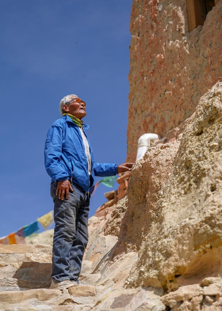皮央和東嘎石窟遺址位于西藏自治區(qū)阿里地區(qū)札達(dá)縣境內(nèi)的皮央村、東嘎村,由皮央石窟群和東嘎扎西曲林寺遺址組成。由于兩村距離很近,遺址規(guī)模巨大,故命名為皮央和東嘎石窟遺址。仁增旺扎是一位75歲的老人,他從2002年開始被聘為當(dāng)?shù)氐奈奈锉Wo(hù)管理員,從那時起就一直守護(hù)著皮央和東嘎石窟遺址,至今已經(jīng)有20多年。