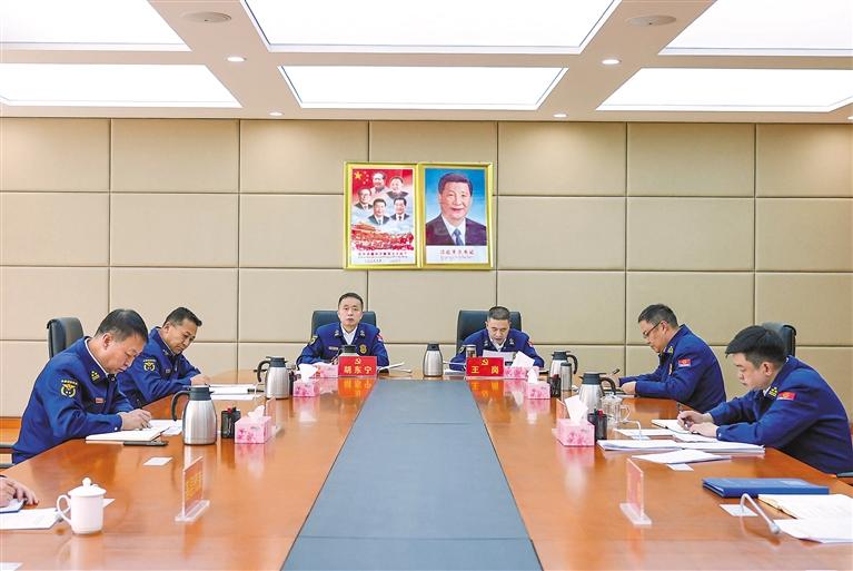 圖為總隊機關(guān)黨委召開主題教育研討會。