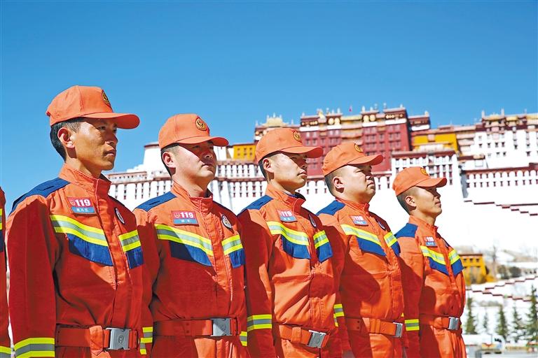 圖為消防指戰(zhàn)員在布達拉宮廣場執(zhí)勤。