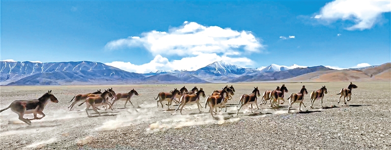 圖為在羌塘國家級自然保護區(qū)內奔跑的藏野驢。邊巴多吉 攝