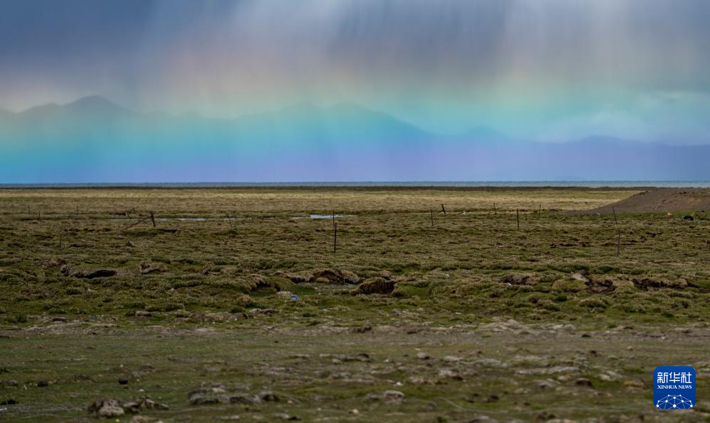 傍晚,普瑪江塘鄉(xiāng)附近出現(xiàn)彩虹(7月4日攝)。新華社記者 孫非 攝