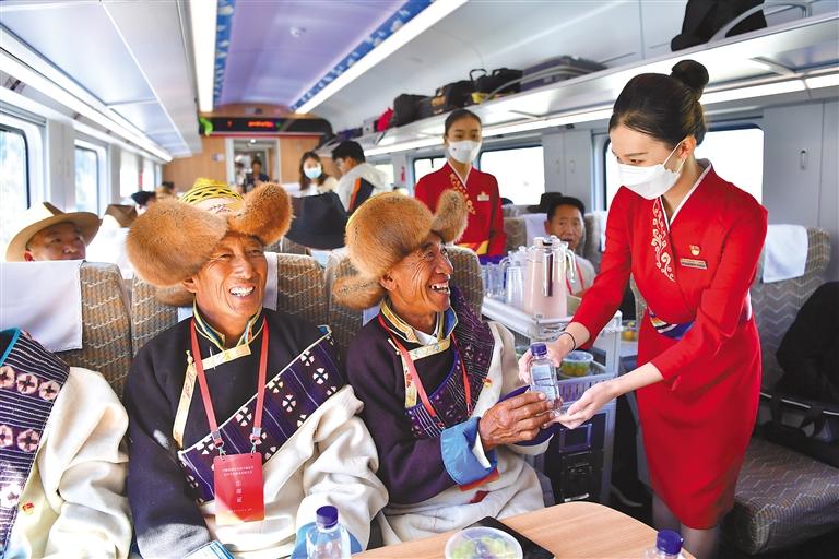 “這兩年,我們與自治區(qū)政府部門及區(qū)教育廳建立聯(lián)動機制,動態(tài)掌握當?shù)厝罕姵鲂行枨蠛蛯W生放假安排,爭取運力政策,有針對性地制定運輸方案,先后增開多趟林芝—日喀則、林芝—拉薩方向的學生專列、旅游專列、務工專列?!崩骤F路林芝站站長朱連祥介紹,靈活多樣的出行專列,不僅便利了各地群眾,對于促進藏東南地區(qū)間的經(jīng)濟發(fā)展、文化交流也具有重大意義,廣大民眾共享著鐵路事業(yè)發(fā)展的成果。