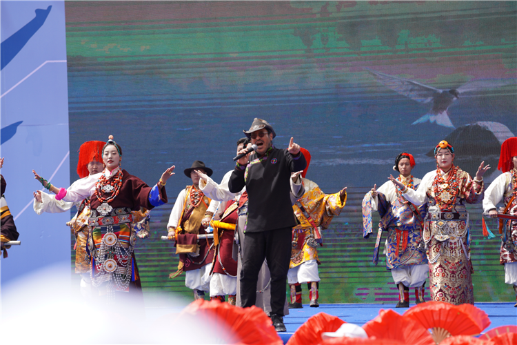 開幕式上,來自然烏鎮(zhèn)小學(xué)的200多名學(xué)生手持花傘,隨著音樂的節(jié)奏變換著各種復(fù)雜的隊(duì)型,精彩的表演令人賞心悅目;男女演員分別飾演十八軍戰(zhàn)士和小女孩,以時(shí)空對話的形式,演繹了八宿發(fā)展的歷史脈絡(luò)。開幕式還邀請了到著名藏族歌手亞東、扎西平措等前來助陣,歌聲穿透陽光,在然烏湖上空回蕩,為當(dāng)?shù)厝罕妿硪粓鲆暵犑⒀纭?nbsp;